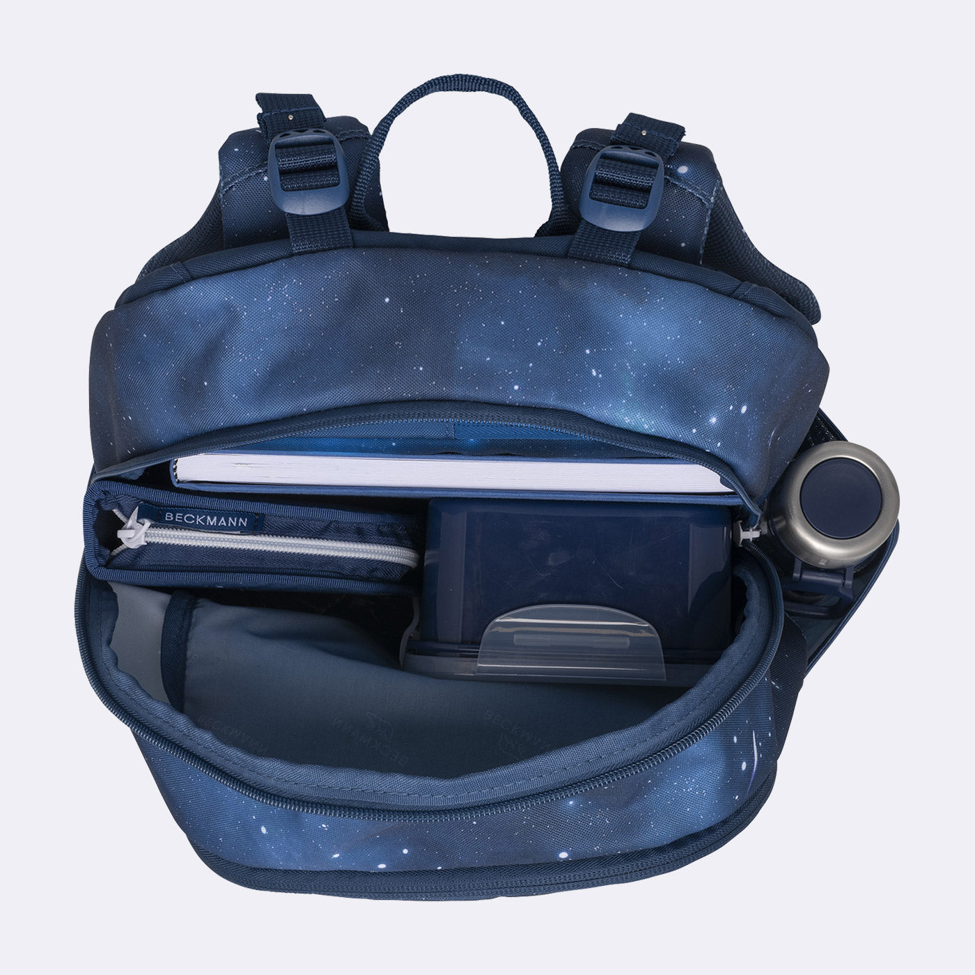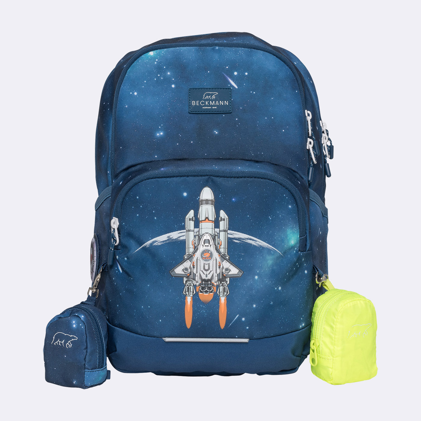 Sport Kids is the perfect choice for school starters who love a sporty look. This backpack is designed with everything you need for optimal carrying comfort: a padded hip belt, chest strap, top tightening straps, and anatomically shaped aluminum back support. Despite its sturdy design, it weighs just 0.8 kg and perfectly matches all of Beckmann's first-grade accessories.