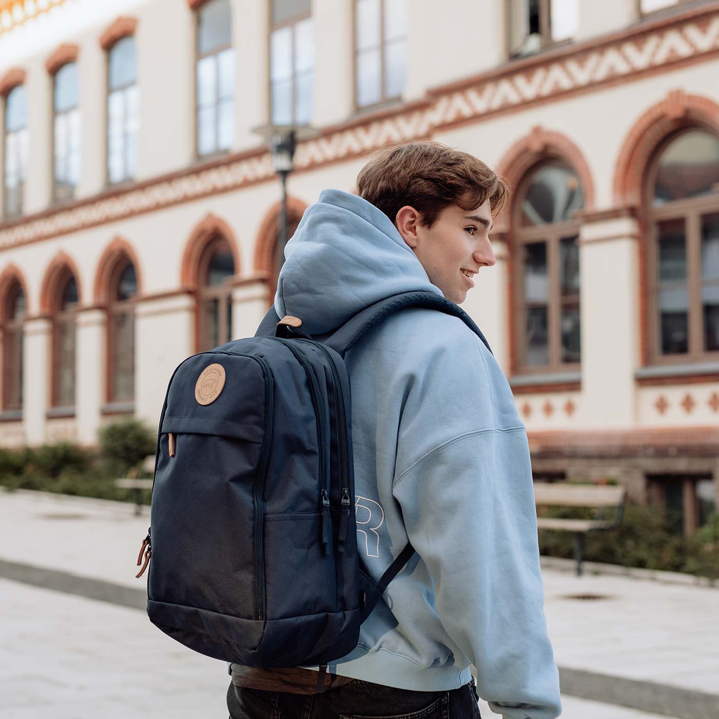 Our largest model in the Urban series has a volume of 30 liters and is equipped, among other things, with a chest strap and an anatomically shaped back support that provides stable and effective carrying. The backpack has a separate zip compartment for a laptop or tablet, many practical pockets and an integrated rain cover in the bottom compartment.